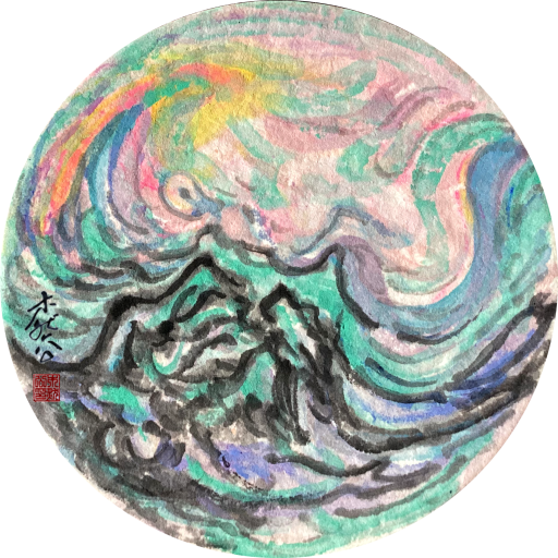 我在创作一种连接古今的文化基因,发现周围都蕴藏着常人无法发现的幻彩之光,它就像暗能量的磁性和电流,虽然你看不见但是真实存在力量很大,古人也是吸收了宇宙自然精华才创作出了中华生生不息的自然与人的叙事方式,那就是升华了的山水哲学,它不同于西方偏写实的风景再现,而是把物象的解构高度提炼,用手中的最原始工具解读出来,那就是水墨线条的语言,千百年来随着一代又一代艺术家的发展变化,形成了固有的描绘世间万物的法度,中国画家首先是哲学家和诗人,手中的笔墨是心中理想社会的抒怀法器,高度的凝练把觉醒的线条和墨色锻造成独一无二的画面,历史的脉络还在延续,今天的艺术家与世界接轨继续创造出先人们也曾期待的艺术能力,这缤纷的世界在古人开来已经无法按照当时的能力去全面的再现,把这个课题留给了今人,中国的写意精神必将在未来同西方的哲学思想艺术理念殊途同归,本色的根基牢不可破新生的承载继往开来,站在时代的巅峰我们看到了这世界的变化是东西方文化深度融合的复兴文化,对于人类文明的参与者而言,努力创造新兴的文化语言符合当代精神,而这语言的缔造者正在成长并开启了新的旅程。 我一直思考一个有趣的问题,如果300年前的八大山人和石涛活到现在,他们还会想当初一样画吗,会改变么,如果他们活着也出国采风,也潜到海底看到了纷繁的世界的景象和西方文明,还会一成不变的在像之前那样画上300年吗,问过很多人他们都异口同声地说不会的,这是为什么呢?后来我明白了,人的认知是随着周围环境变化而逐渐改变的,根基不变但是表现的手段和思维模式一定会改变,我想我的使命就是替他们活下去按照这个博大的艺术使命找到当代中国绘画的一种新的艺术体系,它承载着民族文化的使命和自信以崭新的姿态站在世界之巅!